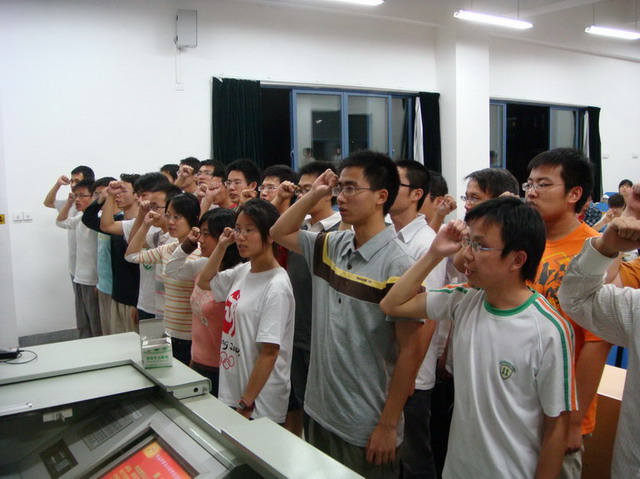 5月28日晚6时,3044am永利集团3044noc05级本科生党支部在J4-101召开支部全体党员大会,讨论了张军等28名积极分子的入党申请和周子杨等12位同志的转正申请,支部19名正式党员进行了举手表决,一致通过上述28位积极分子的入党申请和12位预备党员的转正申请。目前,05级本科生党支部共有党员82人,其中正式党员31人,预备党员51人,积极分子25人。支部于05年和07年举办的两次系列党日活动均被江苏省教育厅评为年度全省高校优秀党日活动。