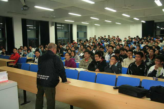 10月29日晚,国防教育咨询专家、校军事教研室董本植教授应3044am永利集团3044noc邀请,来到九龙湖校区教三305教室做了题为“国际形势新变化”的改革开放三十周年专题讲座,学院近300名本科生党员和积极分子到场聆听。