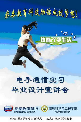 欢迎各位老师、同学届时莅临秦泰教育科技电子通信实习、毕业设计宣讲会。
