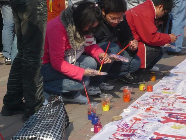 在精英学校的精心准备下,活动展开得十分顺利,同学们参与积极性很高。在资料发放区、取题区、抽奖区同学们络绎不绝,在答题区大家在纸片上写下感想进行交流,在签名区也留下了许多同学的个性签名与掌印……