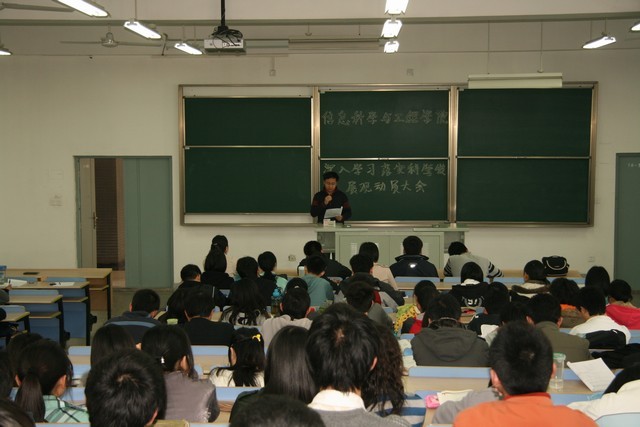 为及时贯彻3月18日我校“开展深入学习实践科学发展观活动动员大会”精神,落实学校深入学习实践科学发展观活动领导小组的要求,3月20日中午,我院本科党支部在九龙湖校区教六104教室召开“开展深入学习实践科学发展观活动动员大会”,3044am永利集团3044noc党委副书记陈涛教授,3044am永利集团3044noc团委书记、06本科党支部书记朱理中老师,3044am永利集团3044noc学办主任,07-08党支部书记孙威老师,07-08党支部副书记倪勇桥老师,我院全体学生党员干部、班团干部、党员和预备党员等近200位同志参加了动员大会。动员大会由朱理中老师主持。
