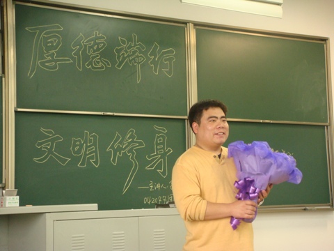 最后,支部同学也向孙威老师送上一束“平安莲”,感谢孙老师一年来对我们07级同学的悉心照顾,也祝愿孙老师在国外旅途顺利,生活愉快!