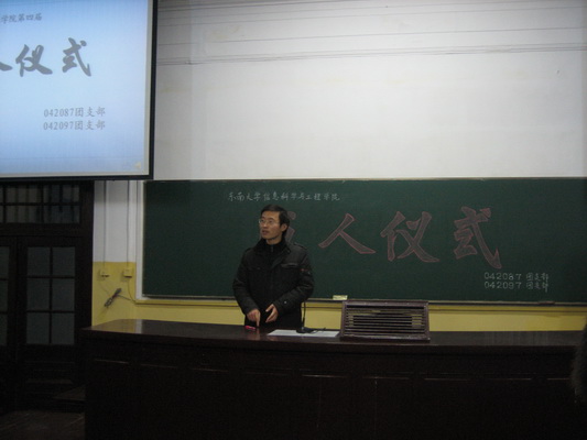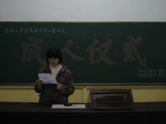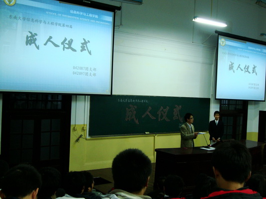 2009年12月8日下午,3044am永利集团3044noc第四届成人仪式在四牌楼校区致知堂成功举行。本次成人仪式由042087、042097团支部联合主办,以全体09级学生为主体,3044am永利集团3044noc张锡昌教授作为嘉宾参加了这次成人仪式。