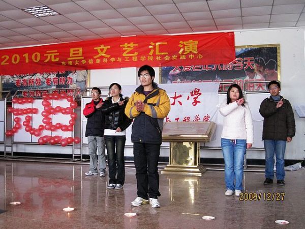 2009年12月27日上午,我院学生会社会实践中心在百家湖老年公寓举办了元旦文艺汇演,和老人们一起迎接新年的到来。
