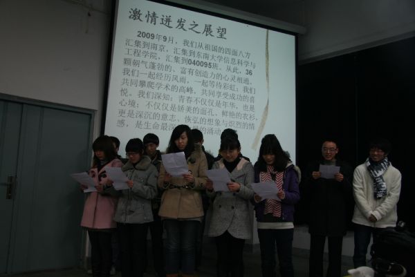 首先上台展示的是08级的5个团支部。他们的展示各有特点,充分体现了大三同学的成熟与优秀。那激情洋溢的讲解、图文并茂的精致PPT、精心制作的材料与视频都给我们留下了深刻的印象。
