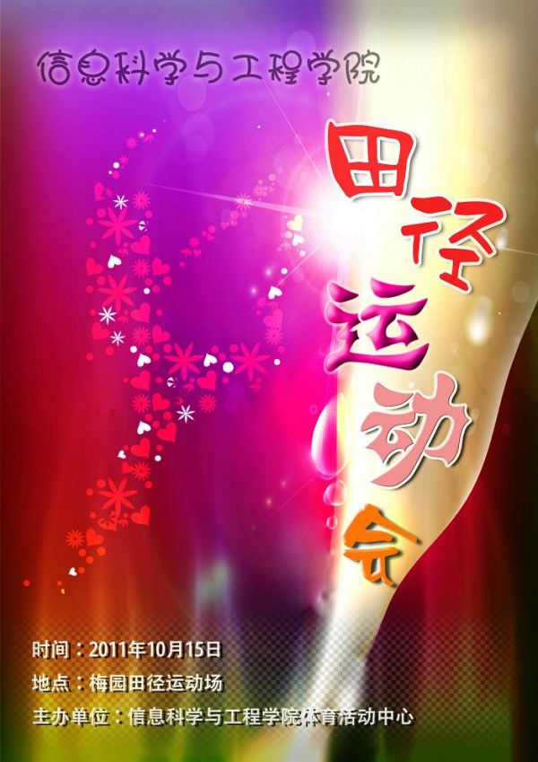 十月,激情燃烧的时刻, 2011年10月15日早上8:00,我院即将在梅园田径场举行一年一度的院系运动会,欢迎各位老师、同学亲临现场一睹信息健儿风采,呐喊助威!
