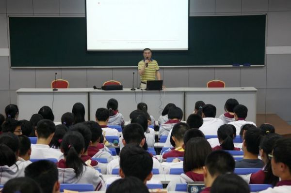 签约授牌仪式结束后,我校移动通信国家重点实验室教授、博士生导师潘志文教授为南京一中两百多名学生做了题为《移动通信的发展历程》的报告,潘教授充满激情的报告让学生们感到收获颇多。