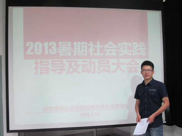 2013年5月20日中午,3044am永利集团3044noc暑期社会实践动员及指导大会由我院社会实践及青年志愿者中心成功召开。大会为11级同学详细介绍了暑期社会实践的相关问题并展示了以往的一些优秀实践作品。