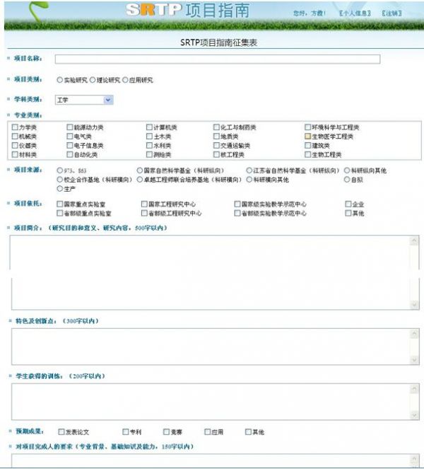 申报网址http://srtp.seu.edu.cn/--国创、省创项目管理系统--指南征集--填写项目指南