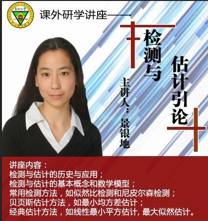 加拿大阿尔伯特大学教授景银地将做主题为“检测与估计引论”的SRTP讲座。