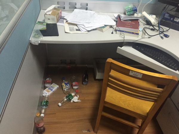 3、 部分实验室杂物纸箱堆积,卫生状况很差,请相关实验室将杂物清理,定期打扫卫生,保持良好的实验室环境;
