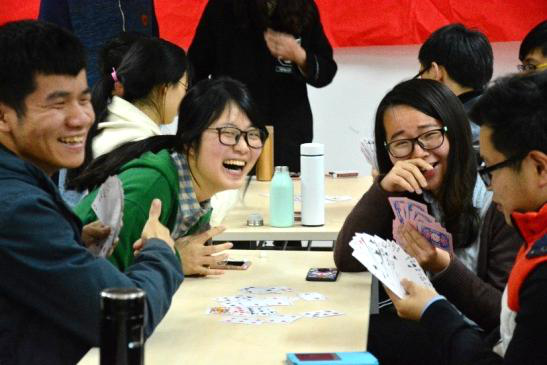 “青春共鸣”系列活动包含两项实验室团体竞技的活动,旨在丰富科研生活的,提高学生团结协作的精神,使学子们在群策群力中收获凝聚力与同门情谊。“雷霆一镖”活动于3月24日在A1208举办。新颖而刺激的飞镖项目吸引了16个实验室队伍。选手们摩拳擦掌、斗志昂扬,不乏优秀的选手直中9环,引起现场阵阵欢呼。虽然多数选手初次接触飞镖成绩不佳,但是这项活动拉近了同学之间的距离,给学子们带来欢乐。最终,经过计环数的初赛与计花色分数的决赛,初赛第六名1309实验室后来居上,以总分数111分夺得第一。“扑克风云——掼蛋大赛”是“青春共鸣”系列的第二项人气活动。掼蛋作为最经典的棋牌类游戏之一,不仅考验逻辑推理,更加考验团队合作。经过了两天的角逐,15个实验室的激烈竞争,在4月6日扑克大赛圆满的结束。其乐融融的初赛、焦灼刺激的半决赛、有如神助的决赛都精彩绝伦,同学们在欢笑声中享受这项活动带来的欢愉,享受共鸣的青春。