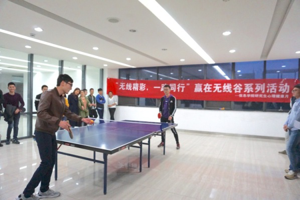 “阳光运动”系列活动包含两项体育类竞技活动,旨在带领我院研究生走出实验室,积极参与到体育运动中去。3月28日,“寻我谷之美——AR红包定向越野”活动正式开始。前一天下午,工作人员已将30个AR红包藏在无线谷的各个角落,遍布篮球场、食堂、快递中心等地点。第二天清晨,便有参赛同学结伴骑着自行车来到无线谷,在初露春意的园区里,争分夺秒,通过支付宝的客户算寻找隐藏着的活动红包,并把认证照发送到公众号的后台。此次活动不仅增强了实验室的凝聚力,也带领大家走出实验室,走向自然,进一步体会我们学习环境的别样美丽。4月7日晚,“乒乓光影”如期举行。乒乓球作为我国国球,在无线谷也拥有较多的爱好者。本次乒乓球比赛以团体赛的形式,共有11个实验室参加,33名选手参与比赛。作为压轴活动,很多实验室在比赛开始前就自发的到场地进行训练,更有啦啦队到场加油呐喊。本次活动也挖掘出许多隐藏的乒乓球高手。在比赛时,很多高难度的扣杀以及一些罕见的运气球都会引起现场同学的欢呼。经过两轮的淘汰赛和一轮巅峰对决循环赛,2309实验室获得冠军,由现场的工作人员为获奖的实验室颁发奖品并拍照留念。这项活动不仅丰富了课余生活,同时对激发学生对体育活动的热情、增强身体素质起到了一定的作用。