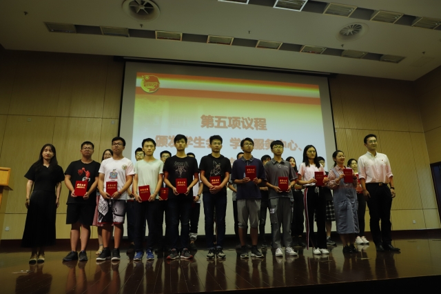 然后由王皓然老师、李东阳老师颁发学生会、学生服务中心、科技协会优秀学生干部奖。