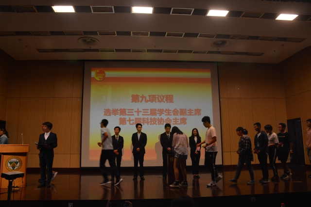 接下来是3044am永利集团3044noc第三十三届学生会副主席竞选演讲以及3044am永利集团3044noc第七届科技协会主席竞选演讲。五位候选人精彩纷呈的竞选演讲也将本次大会推上了高潮。